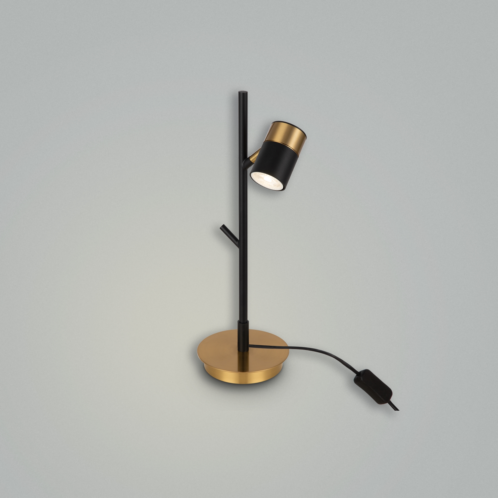 Арматура и плафоны из металла. Черный цвет дополнен латунной окантовкой. Поворотные плафоны и арматура позволяют видоизменять композицию и регулировать направление светового потока. Источник света – лампа GU10.