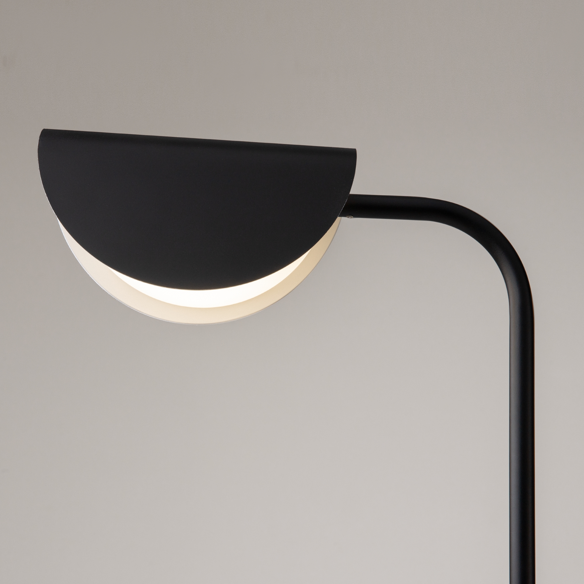 Арматура и плафоны из металла, цвет – черный. Оригинальная форма плафона с плавным контуром. Источники света скрыты под акриловым рассеивателем.